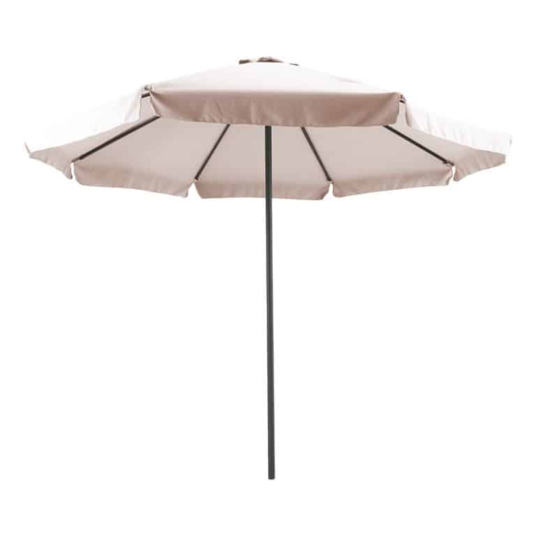 Ombrellë profesionale Jiopel, copë e vetme stofi ngjyrë bezhë, prej alumini ngjyrë në të bardhë, Φ3m