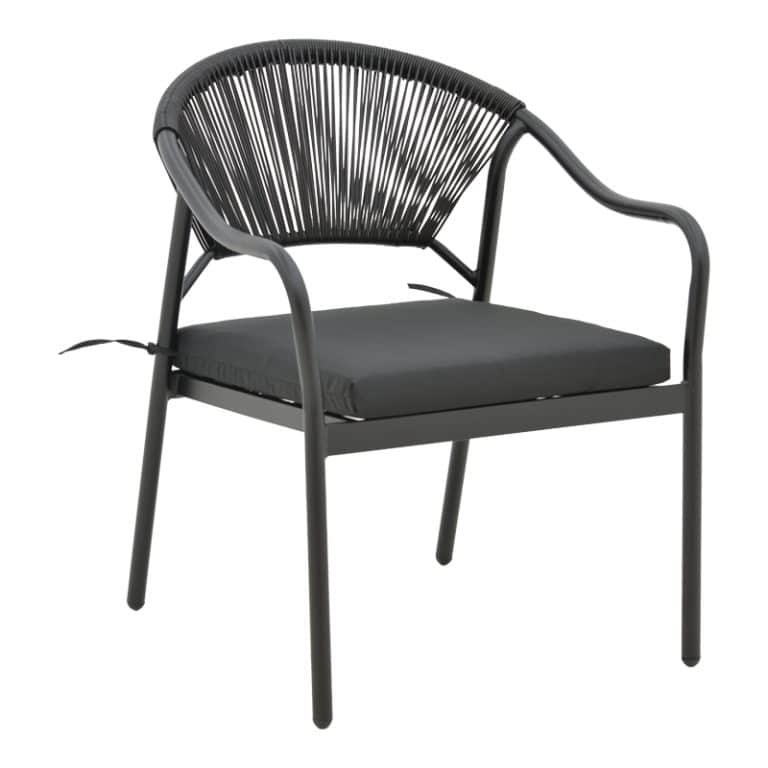 Kolltuku Jerqui bastun prej palme kacavjerrëse thurje-këmbë të zeza metalike-jastëk i zi 60x64x78cm
