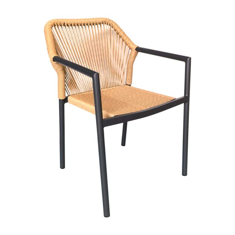 Karrige alumini Savor, kornizë antracit e stivueshme, tekstil ratan natyral 55x58x63cm