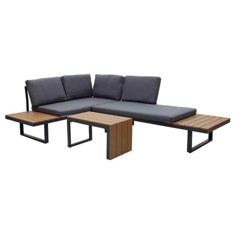 Komplet dhome ndenje verande prej 4 copash metali dhe tekstili ne nuance antracit