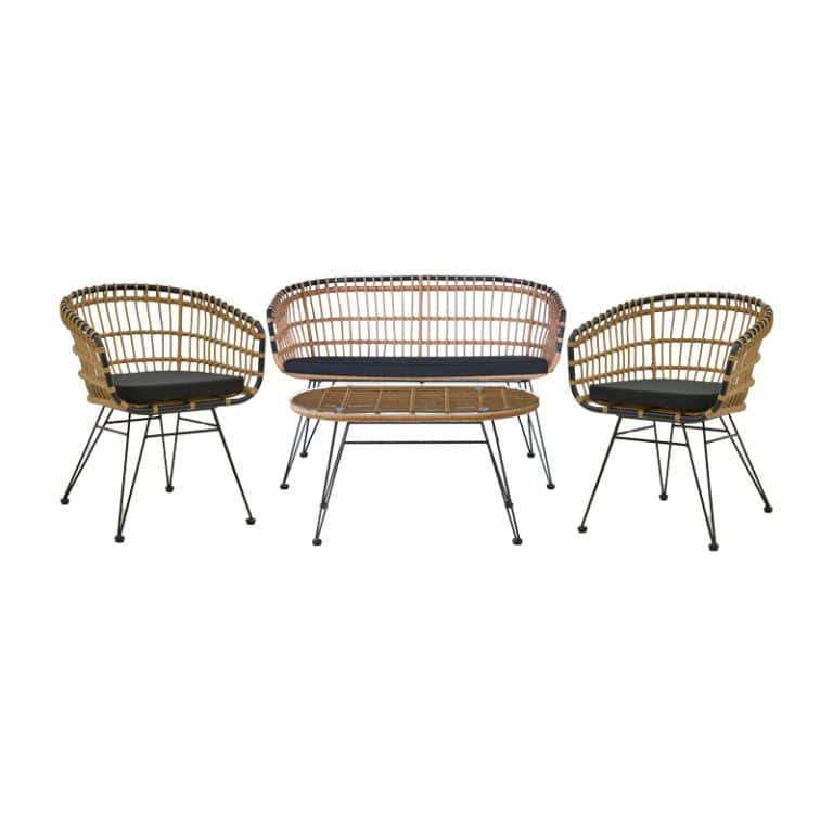 Set kopshti Lounge Naoki, 4 copë, ratan natyral-metal i zi-xham 148x70x72cm