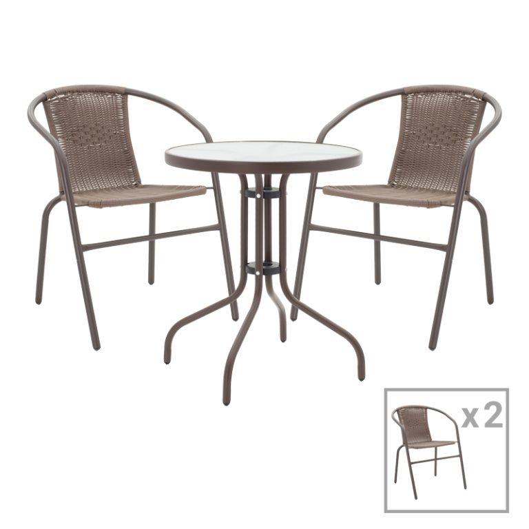Komplet tavoline e ngrënies Obbi-Watson prej 3 metali kafe-pe 60x60x70cm