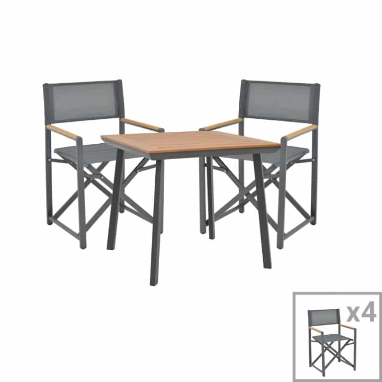 Komplet tavoline ngrënieje Mabu-Synergy prej 5 antracit alumini dhe kompensatë me ngjyrë natyrale 80x80x74cm