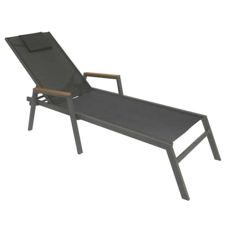 Shezlong me mbështetëse të krahut Koby, në ngjyrë antracit me tekstil alumini