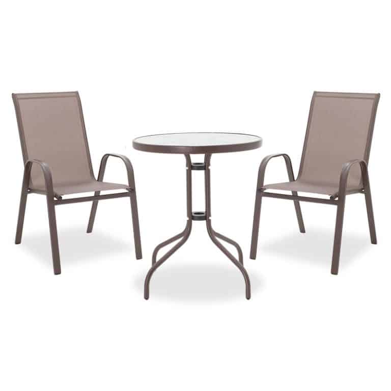 Tavolina e ngrënies Watson-Calan komplet 3 metal-tekstilen kafe D60x70cm