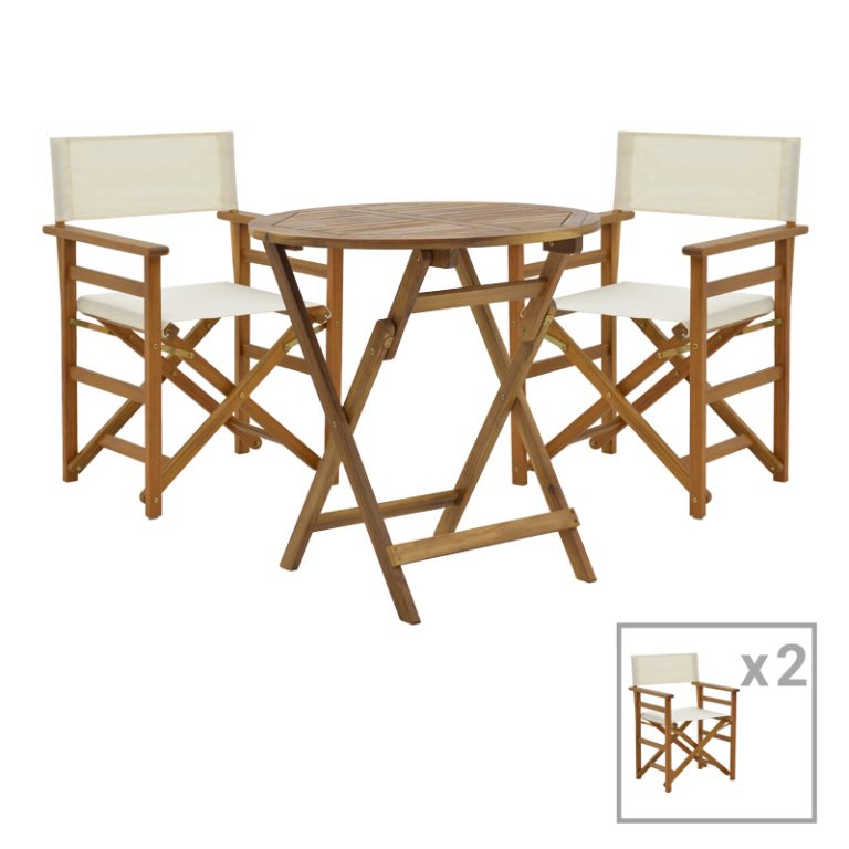 Tavolinë e ngrënies Bistrual-Perdu, set 3 copë, dru natyral akacie 60x60x72cm