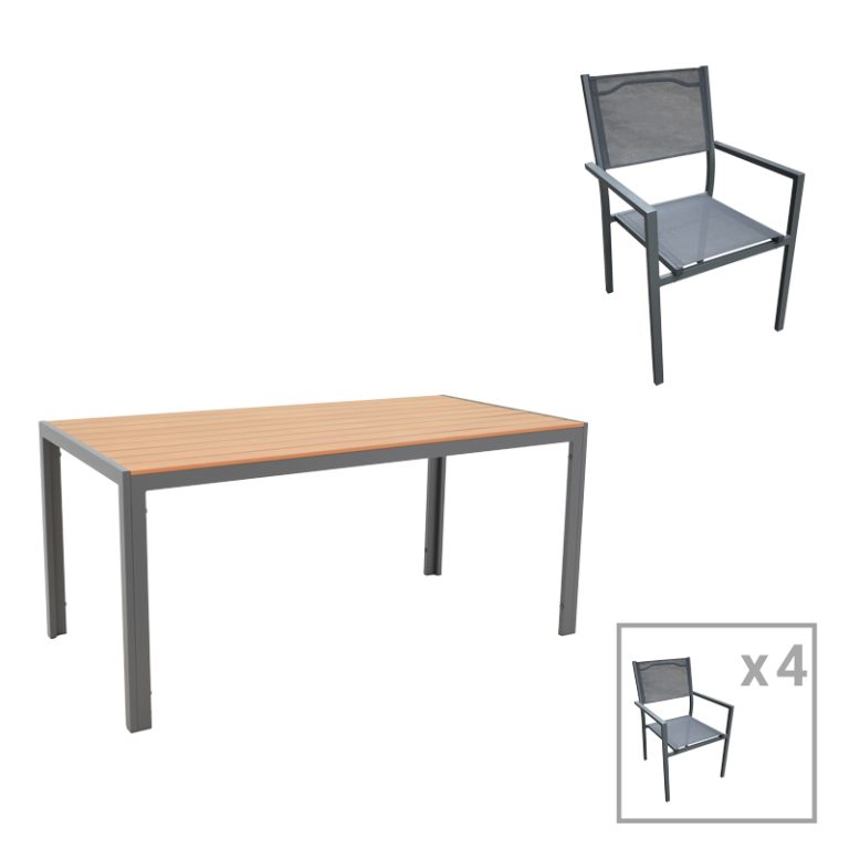 Tavoline ngrenie Nares-Moly C komplet 5 antracit alumini dhe tekstili me kompensatë në ngjyrë natyrale 180x90x72.5cm
