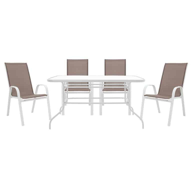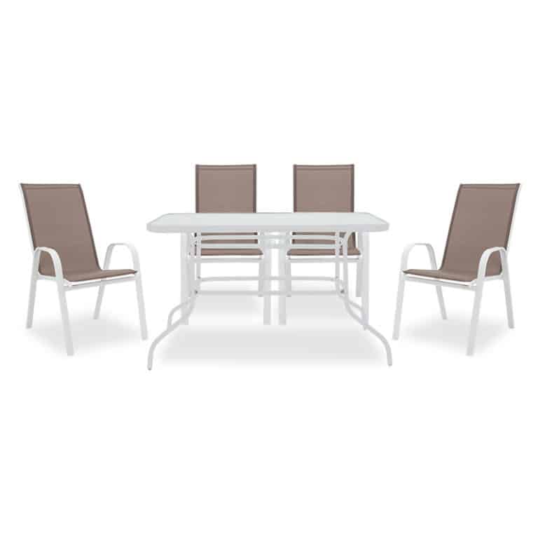 Tavoline ngrenie Valor-Calan B komplet 5 pako bote metalike te bardhe-tekstilen kafe 140x80x70cm