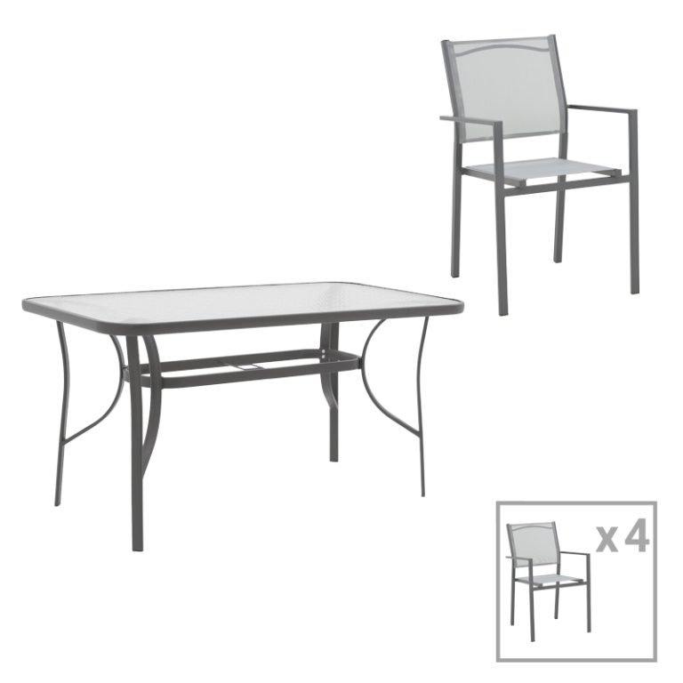 Tavolinë ngrënie Set Ensure-Confidence prej 5 metali në nuancë antraciti120x70x70cm