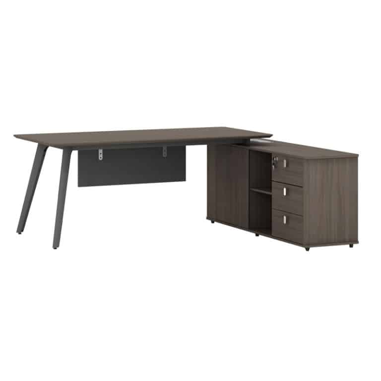 Tavolinë pune profesionale Denith, kënd i djathtë, ngjyrë antracit-arrë 220x180x75cm