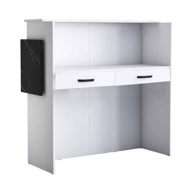 Tavolinë recepsioni Triana, melaminë e bardhë-mermer i zi 110x40x110cm