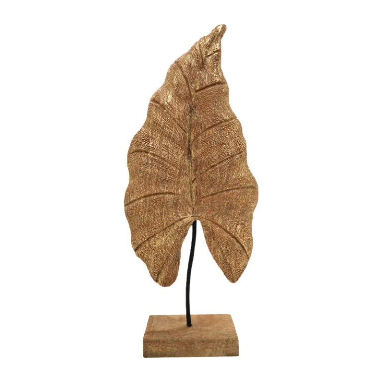 Dekorim tavoline në formë gjethe Thelx Inart. dru mango, hekur ngjyrë ari 24.5×8.5×57.5cm