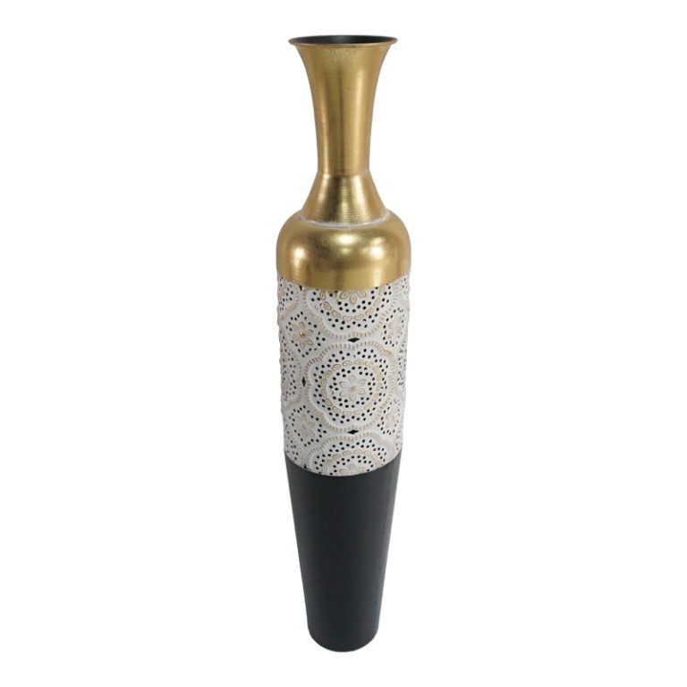 Vazo dekorative Balan Inart, metal në nuance ari, e bardhë dhe e zezë D16.5×88.3cm
