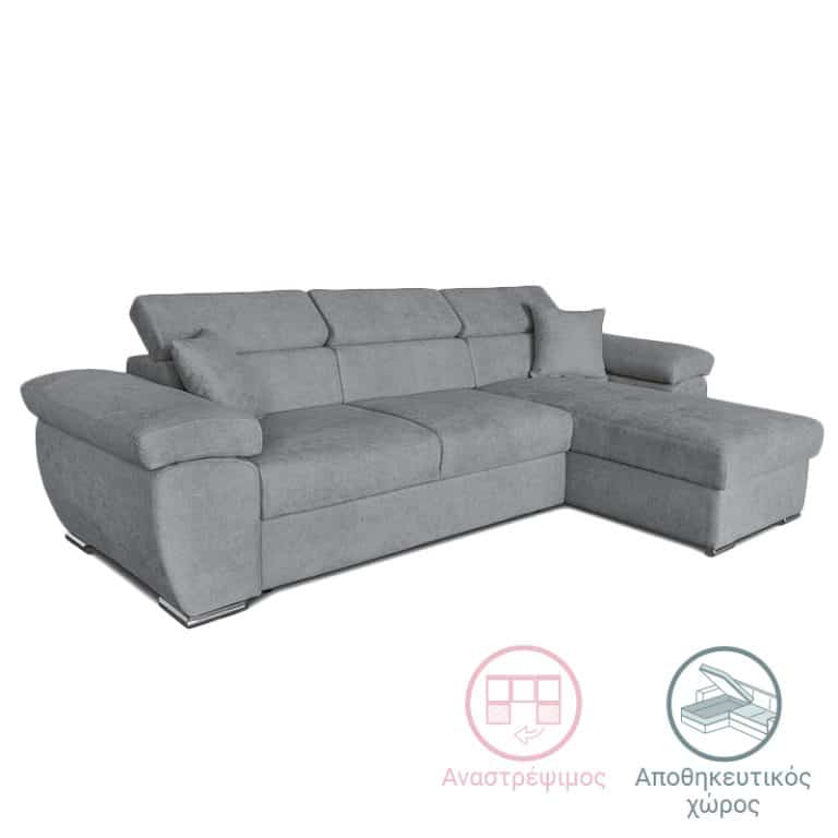 Divan-krevat këndor, me hapësirë magazinimi Kansas stof gri të errët 235x150x80cm