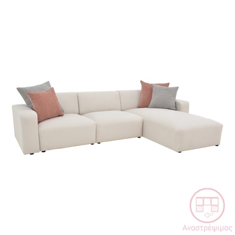 Divan i kthyeshëm këndor Manimy pëlhurë ngjyrë kremi 285x186x95cm