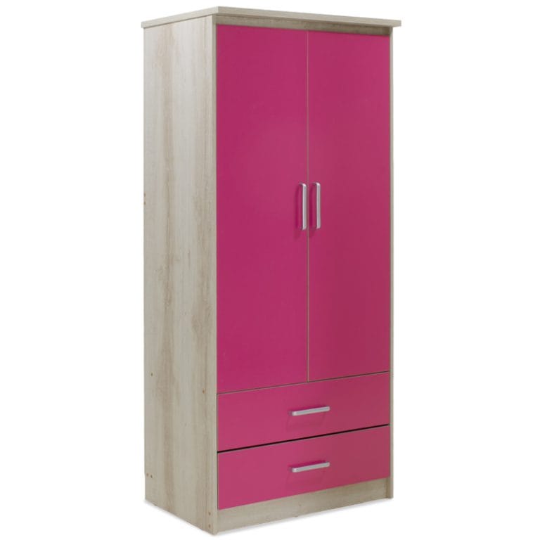Gardërobë për fëmijë Looney me 2 dyer dhe sirtarë me ngjyrë kastilo-rozë 81x57x183