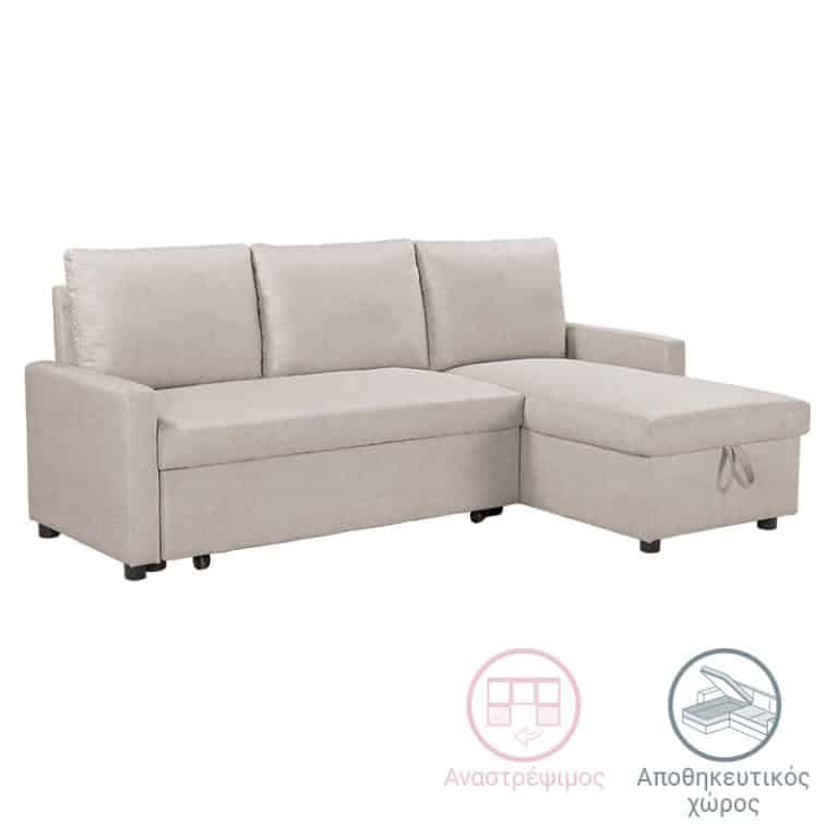 Kënd divani me shtrat dhe hapësirë magazinimi Alaska, stof bezhë 204x143x83cm