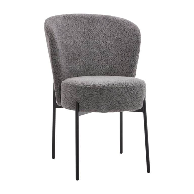 Karrige Gratify, stof teddy gri me këmbë metalike të zeza 43x56x83cm