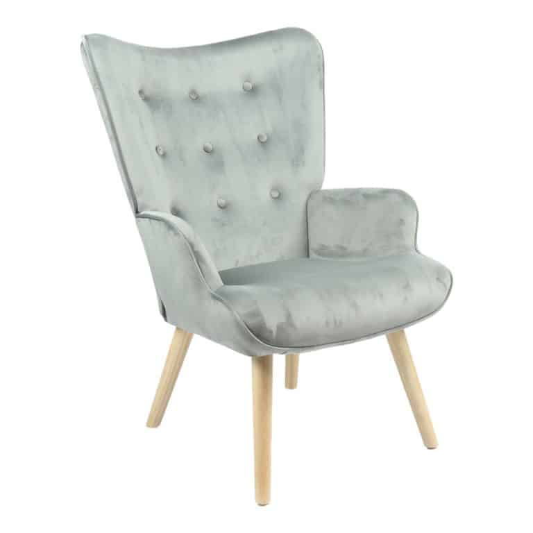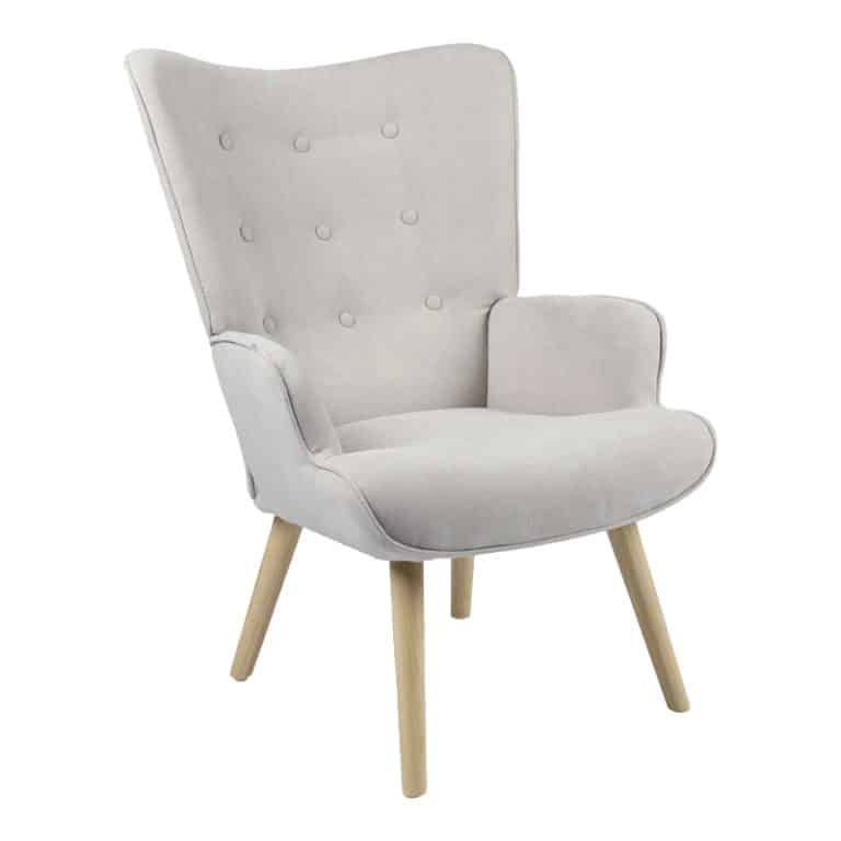 Karrige Fluffy, me stof kadife ngjyrë bezhë, me këmbë natyrale, 75x69x96cm