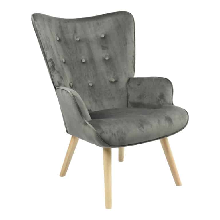 Karrige Fluffy, stof kadife me ngjyrë gri të errët, me këmbë natyrale, 75x69x96cm