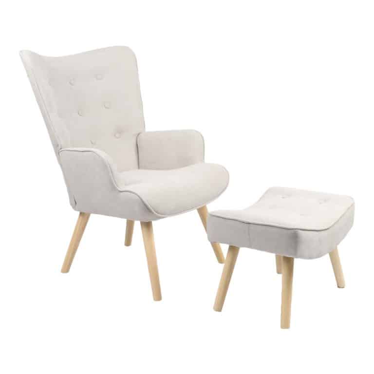 Karrige me tabure Vivienne, stof gri i lehtë me këmbë natyrale 75x69x96cm