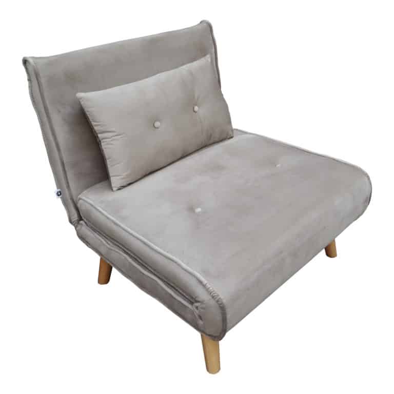 Divan-krevat Josuane, kadife gri dhe këmbë prej druri natyral 77x80x81cm