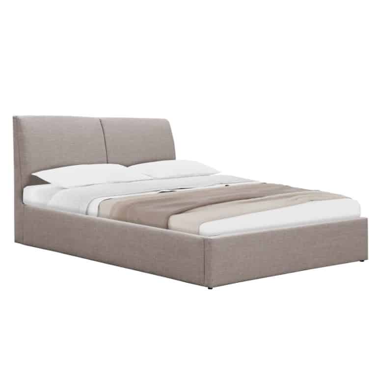 Krevat çift Wardie me hapësirë magazinimi, me stof kadife, ngjyrë bezhë, 160x200cm
