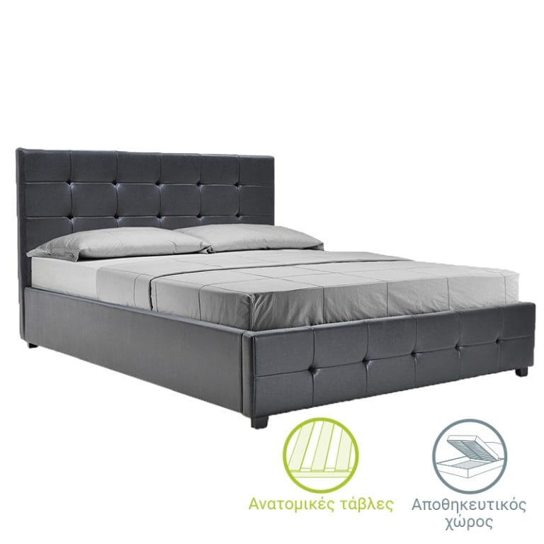 Krevat i dyfishtë Roi PU me hapësirë magazinimi në mat të zi 160×200
