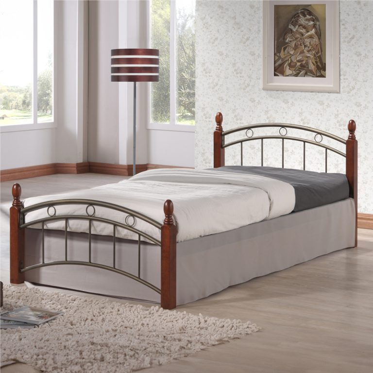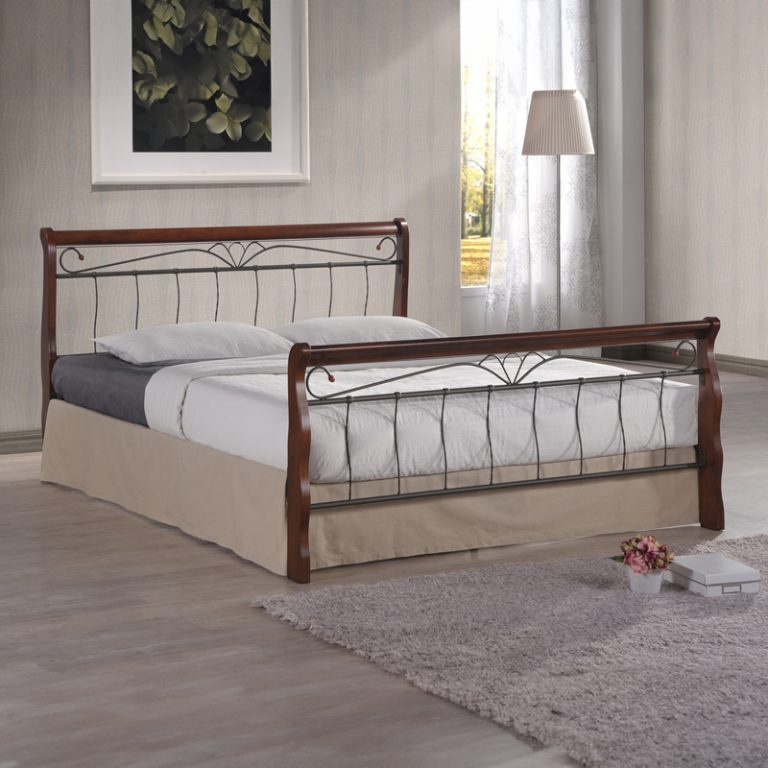 Krevat i dyfishtë Romilly me ngjyrë të zezë shkëlqyes-arrë 160x200cm