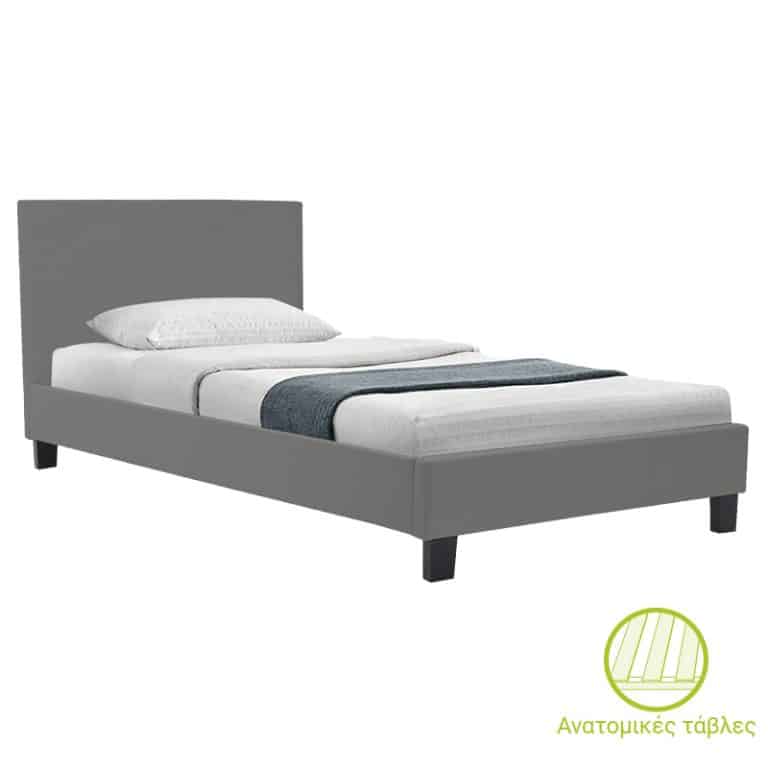 Krevat tek Tito, me hapësirë magazinimi, stof teddy në nuancë gri e lehtë 120x200cm