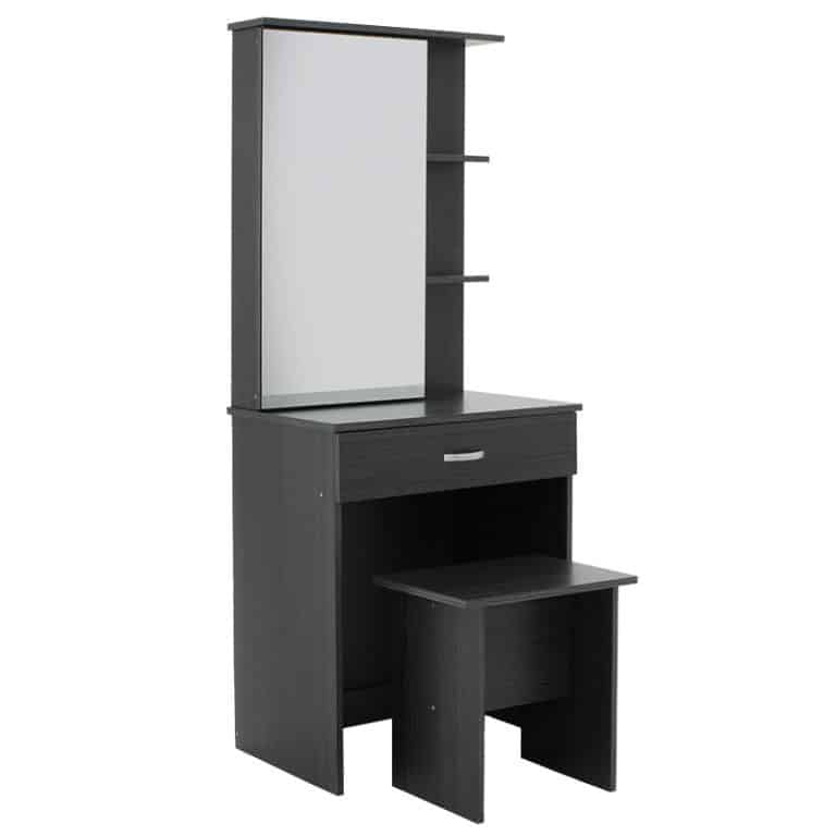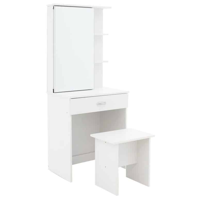 Tavolina e veshjes me pasqyrë Wardio melamine bardhë-e zezë 100×29.5x76cm