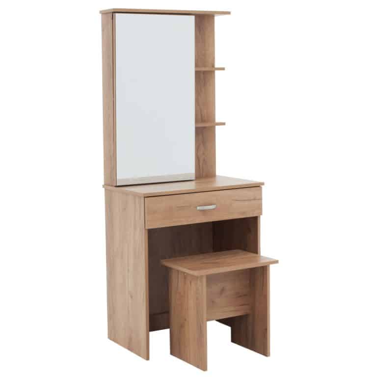 Tavolina e veshjes me pasqyrë Zelia në ngjyrë natyrore mo 60×40.5x151cm