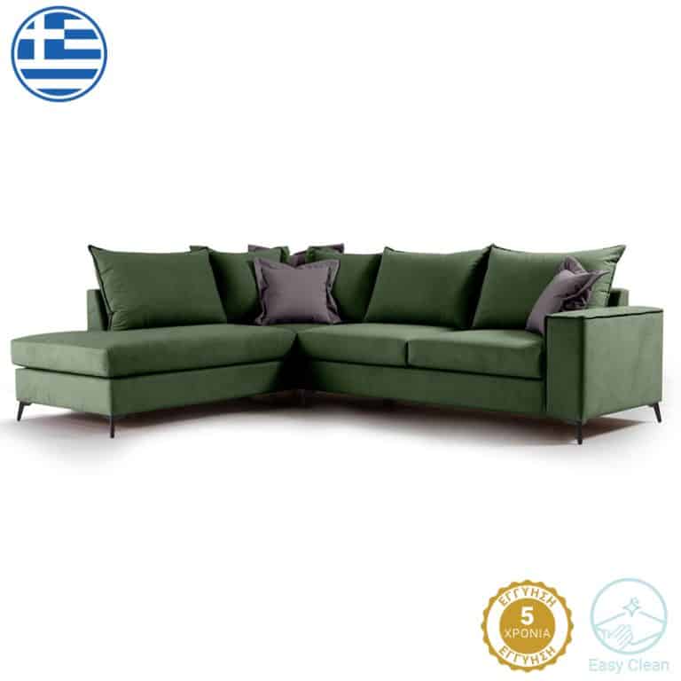 Divani i qoshes Pakoworld romantik majtas pëlhurë qoshe gri të errët-gjelbër 290x235x95cm