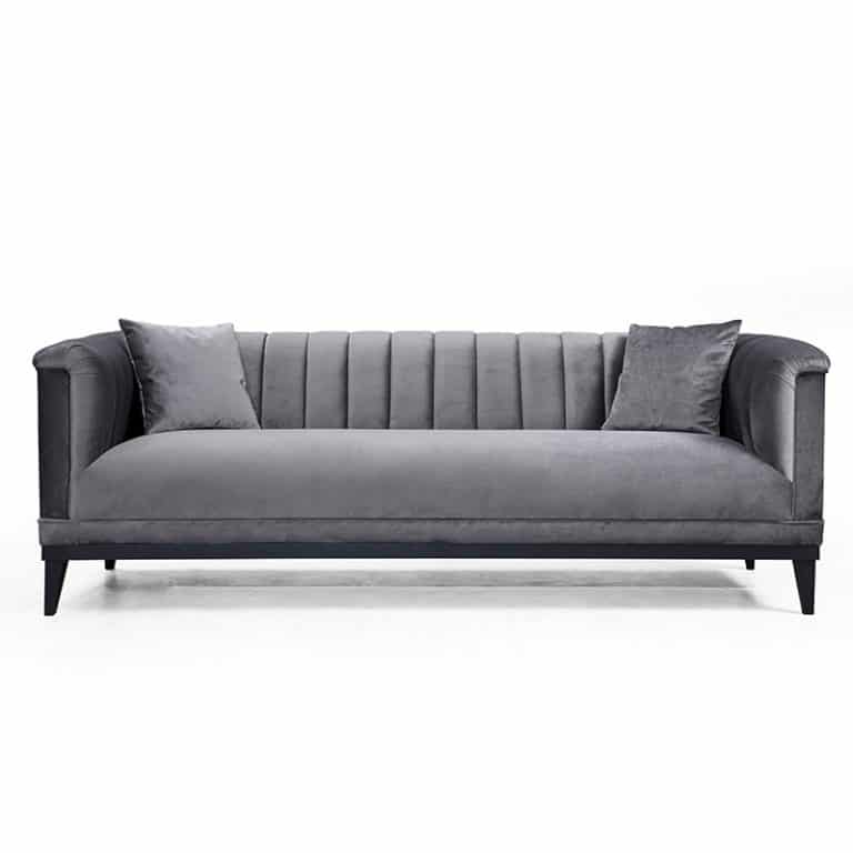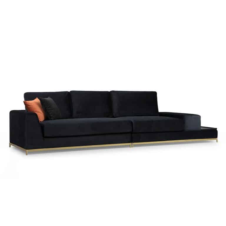 Divan 3-vendësh PWF-0511, stof me ngjyrë të zezë, këmbë ngjyrë ari, 320x102x84cm