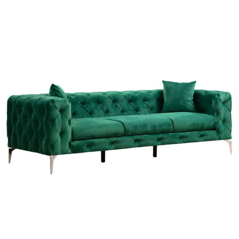 Divan 3-vendësh PWF-0579 Chesterfield lloji pëlhurë e gjelbër 237x90x73cm