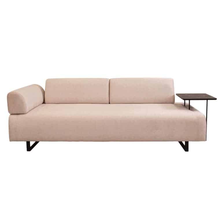 Divan 3-vendesh PWF-0595 me tavolinë anësore, stof në ngjyrë bezhë, 220x90x80cm