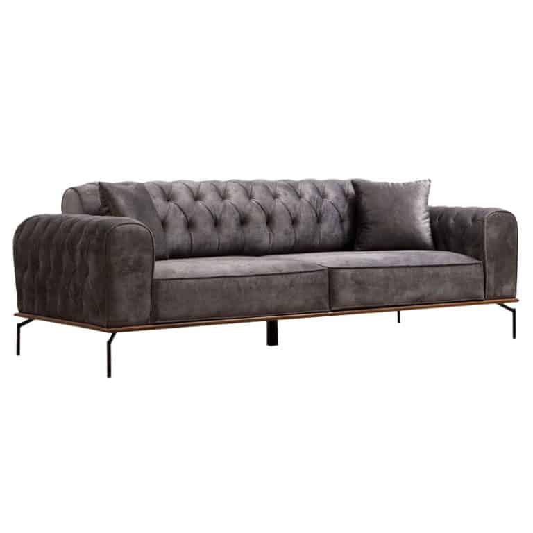 Divan me shtrat 3-vendësh PWF-0596, lloji Chesterfield, stof në ngjyrë antracit, 225x92x78cm