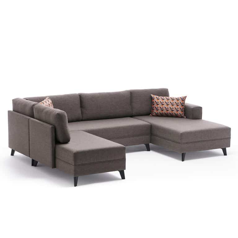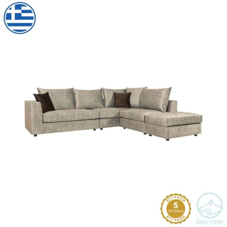 Divan polimorfik i kthyeshëm Iris beige pëlhurë antike-jastëk kafe të errët 290x250x95cm