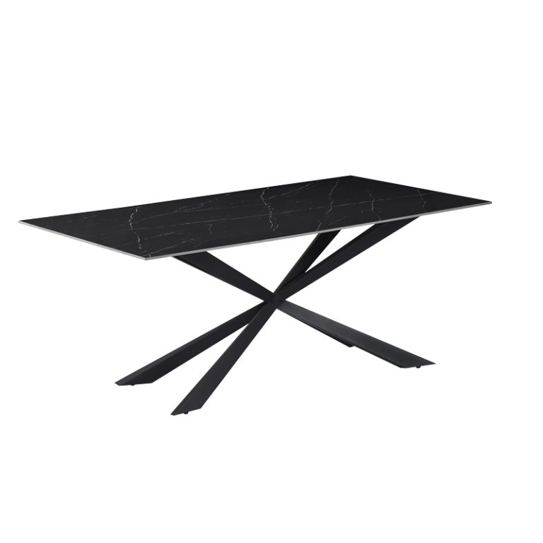 Tavolinë Cozline Inart, mermer i zi, gur i sinteruar me këmbë metalike të zeza 180x90x76cm