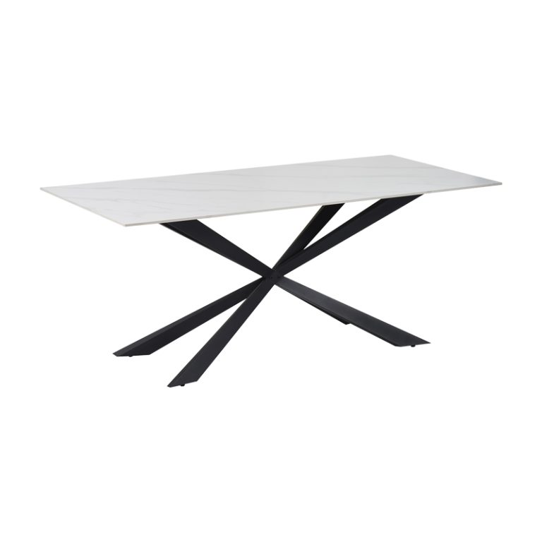 Tavolinë Cozline Inart, mermer i bardhë, gur i sinteruar-këmbë metalike të zeza 180x90x76cm