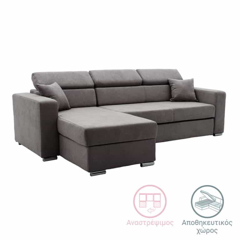 Kënd divani Lura, kënd i kthyeshëm, stof antracit 255x162x75-90cm