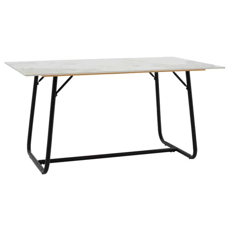 Tavolinë e ngrënies Revello, gur i sinteruar mermer i bardhë – dizajn këmbësh metalike të zeza 150x90x75cm