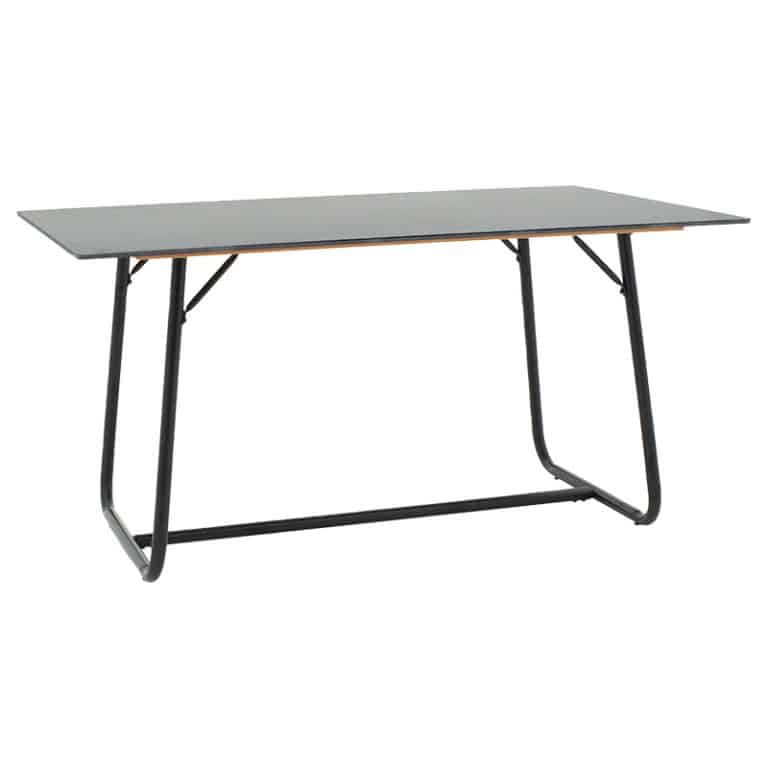 Tavolinë e ngrënies Revello, gur i sinteruar mermer i zi, këmbë të zeza metalike 150x90x75cm
