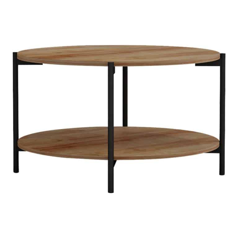 Tavolinë kafeje, me melamine ngjyrë arre-këmbë të zeza , D80x45cm
