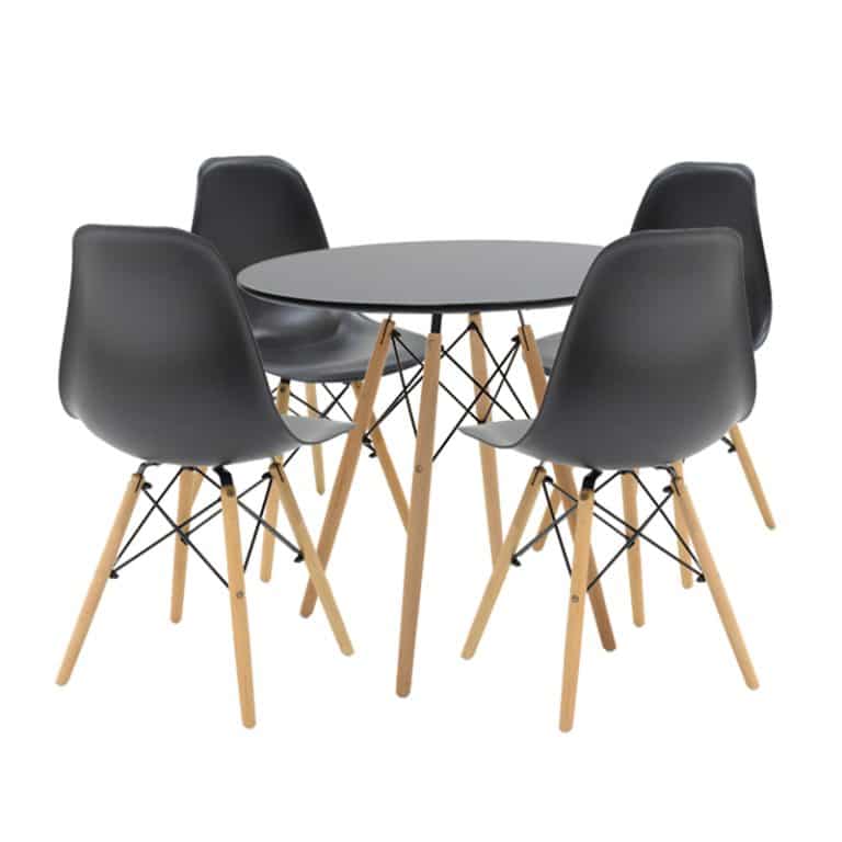 Tavolinë e ngrënies Julita, set 5 copë, e zezë-në nuancë natyrale D80x73cm