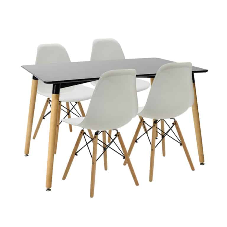 Tavolinë e ngrënies Natali-Julita, set 5 copë, ngjyrë e zezë-e bardhë-natyrale 120x80x76cm