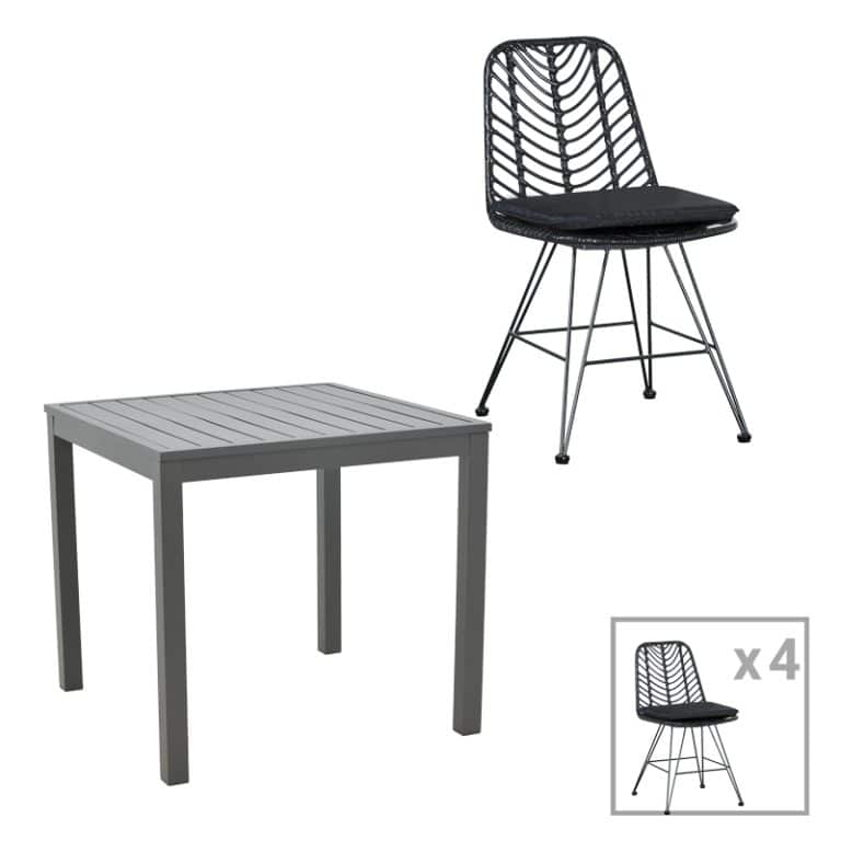 Set tavolinë ngrënieje Kliton-Naoki, set prej 5 copë, alumin antracit dhe metal në nuancë të zezë 80x80x74cm