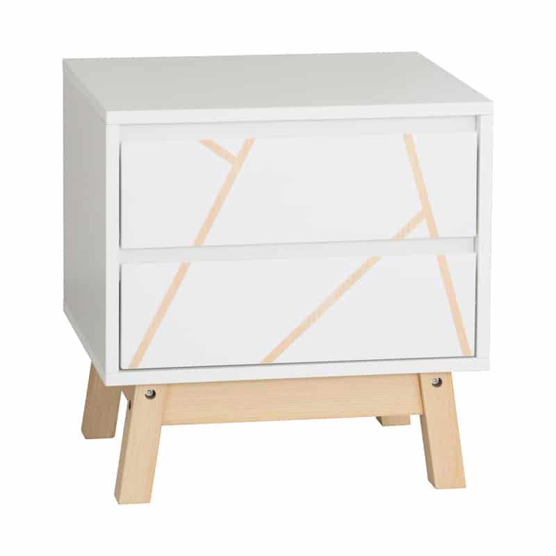 Komodinë anësore shtrati Aria, ngjyrë e bardhë-natyrale 45x35x47cm