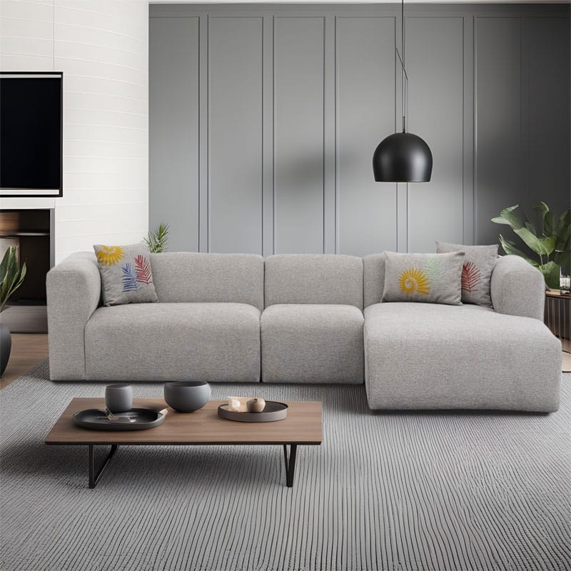 – Vjen me tre jastëkë dekorativë me të njëjtën ngjyrë si divani me modele.