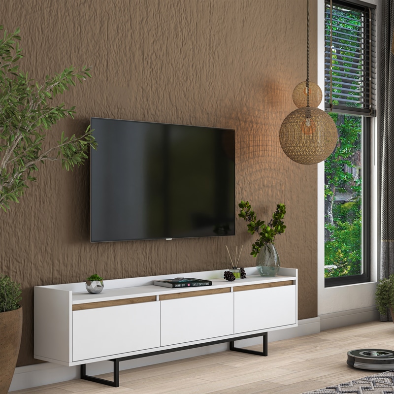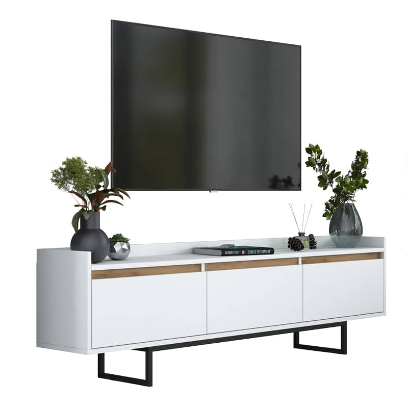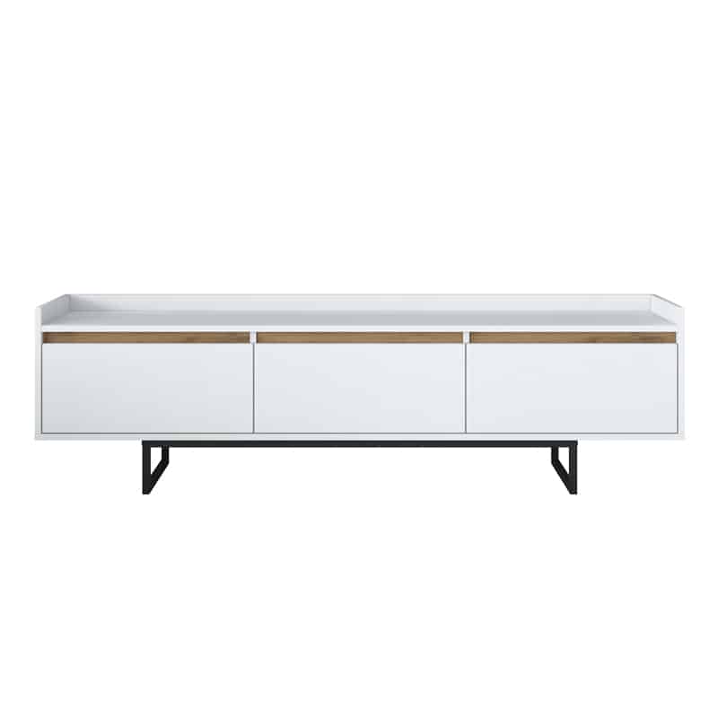 Mobilje televizori Ranil, melaminë arre e bardhë me këmbë metalike të zeza 180×29.7×51.8cm